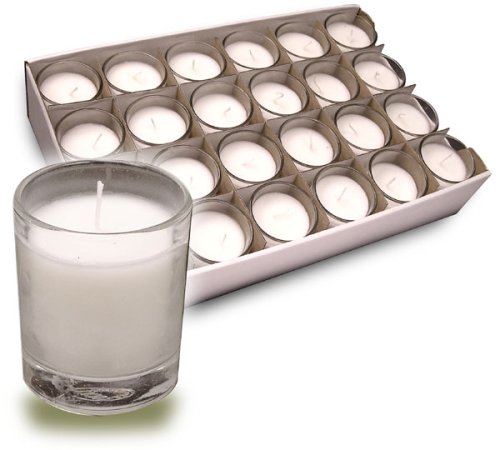 Packed 24 candles to a box, these glass votives will provide many hours of burning time at a low cost. Each votive will burn up to 15 hours. (Trim the wick to 1/4" before lighting to get the maximum burning time). The heavy-duty 1/8 inch clear glass container is filled with an unscented white wax and when the wax is depleted the container can be reused as a votive or cleaned and used for general household purposes. Each votive measures 2-3/8 inches high and slightly tapers to 2 inches diameter at the top. These votive cups are ideal for devotional purposes or for use in candle lamps and table accents. This offer includes one box of 24 votive candles. For hundreds more craft, art and hobby products, be sure to visit our National Artcraft Storefront. We have the creative component you need.